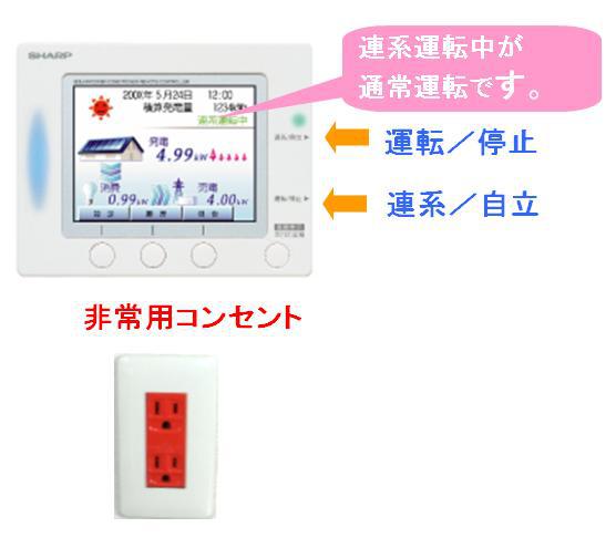 これで非常用コンセントが使用できます。 連系運転に戻すには、逆に自立運転中に 1.〜3.の操作で連系運転になります。