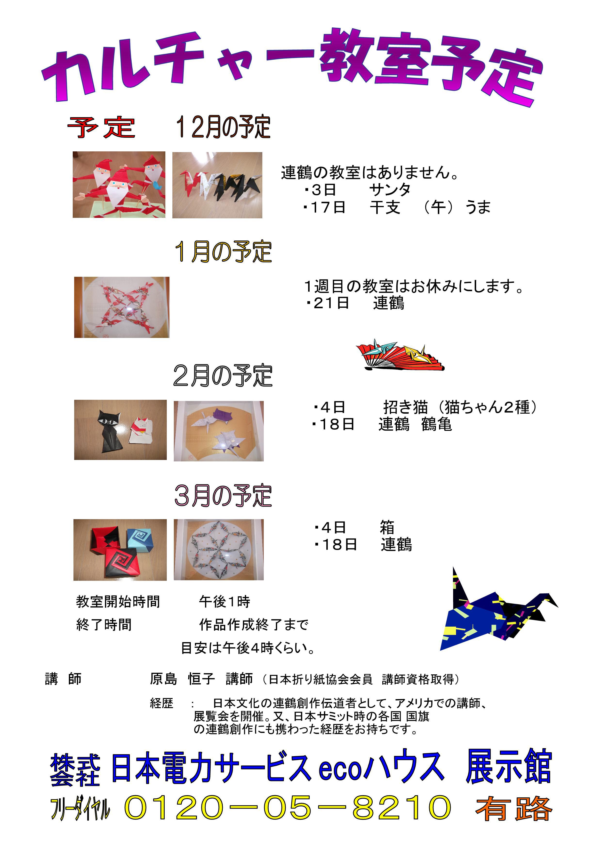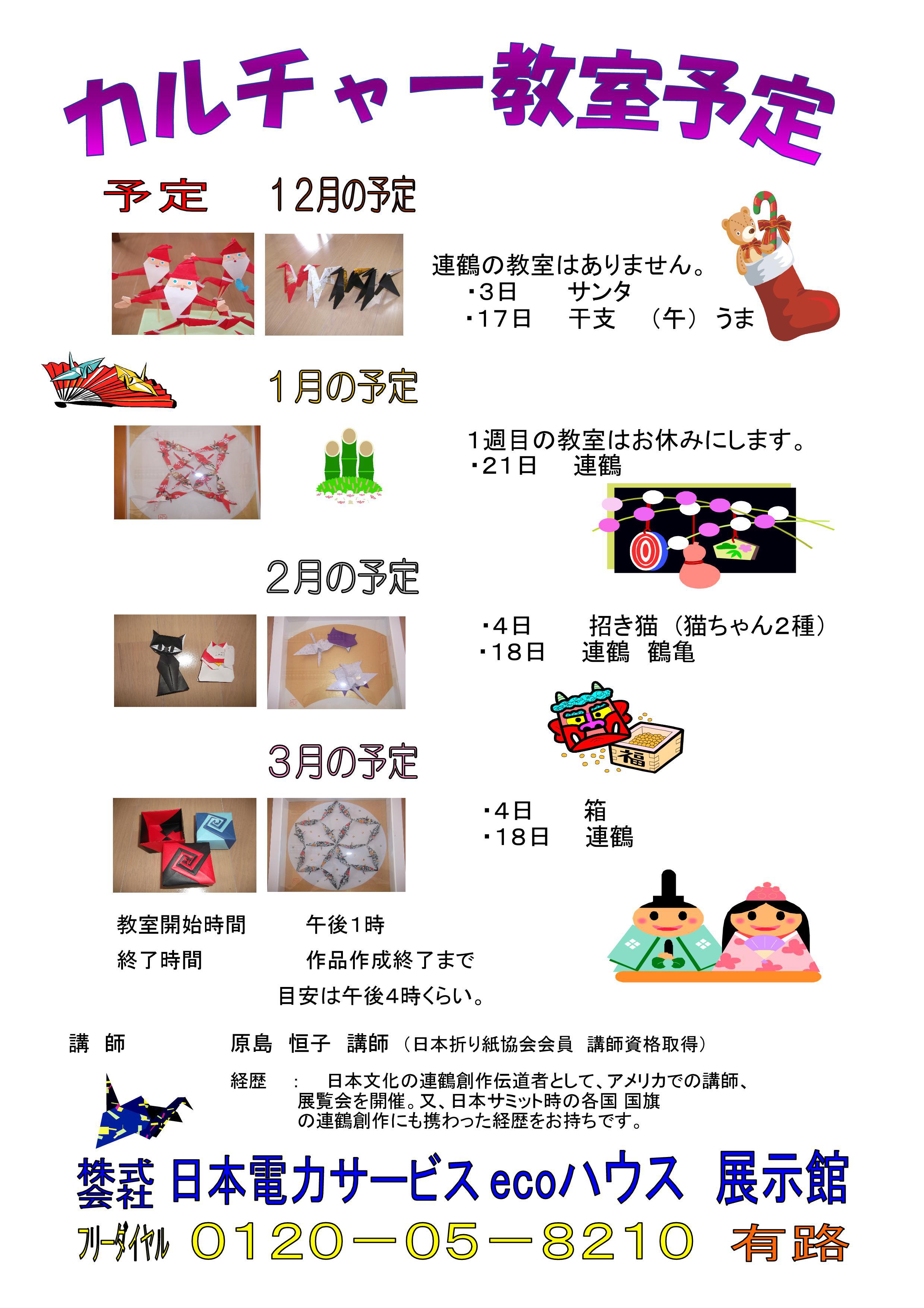 12月から先の予定が決まりました。 ぜひ体験してみて下さい。 ご自分が作ってみたいと思う時だけの参加でもかまいません。 ご連絡しにくい場合は、直接いらして頂いてもかまいません。 (だだ、ちょっと材料が足らなくなってしまう場合があります。) これは、予定でありますので、変更がある場合もありますので、宜しくお願い致します。 |