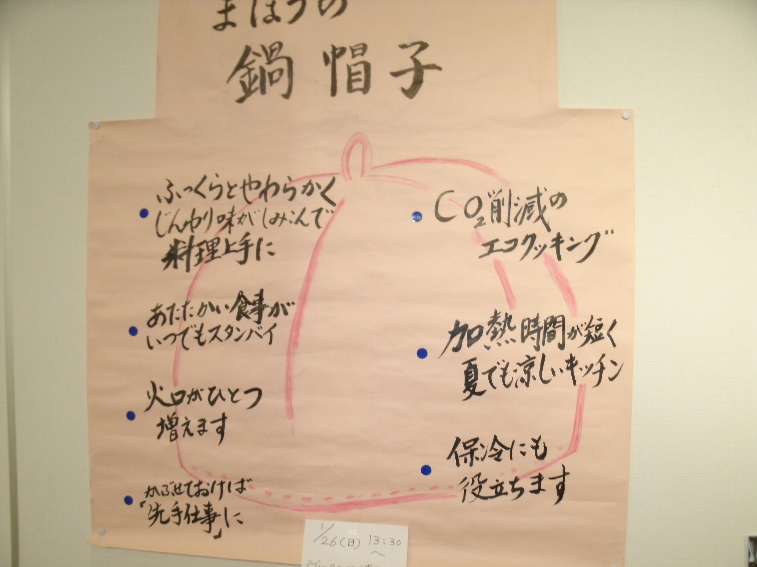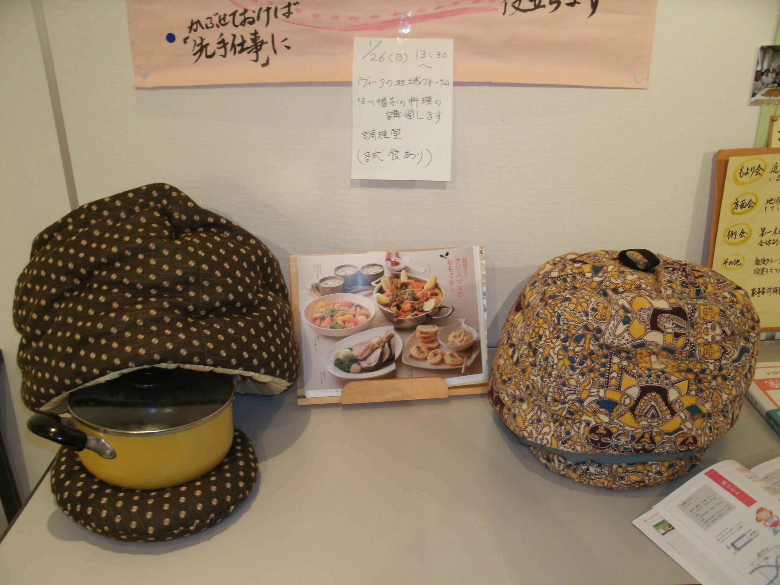 鍋を保温させ、調理に掛かるエネルギーを節約させられる、〔鍋帽子〕と呼ばれる物を作っていらっしゃるとの事です。