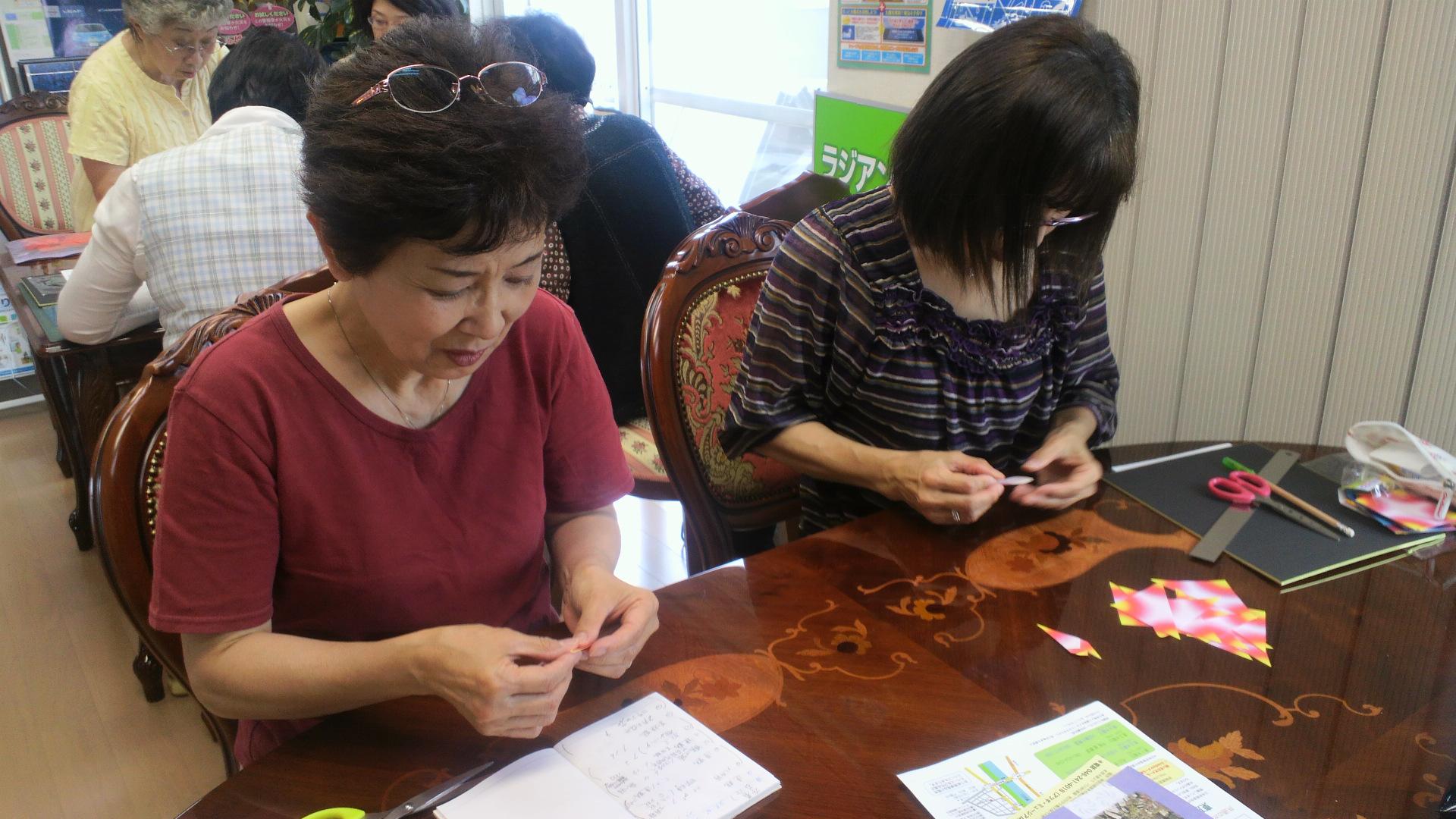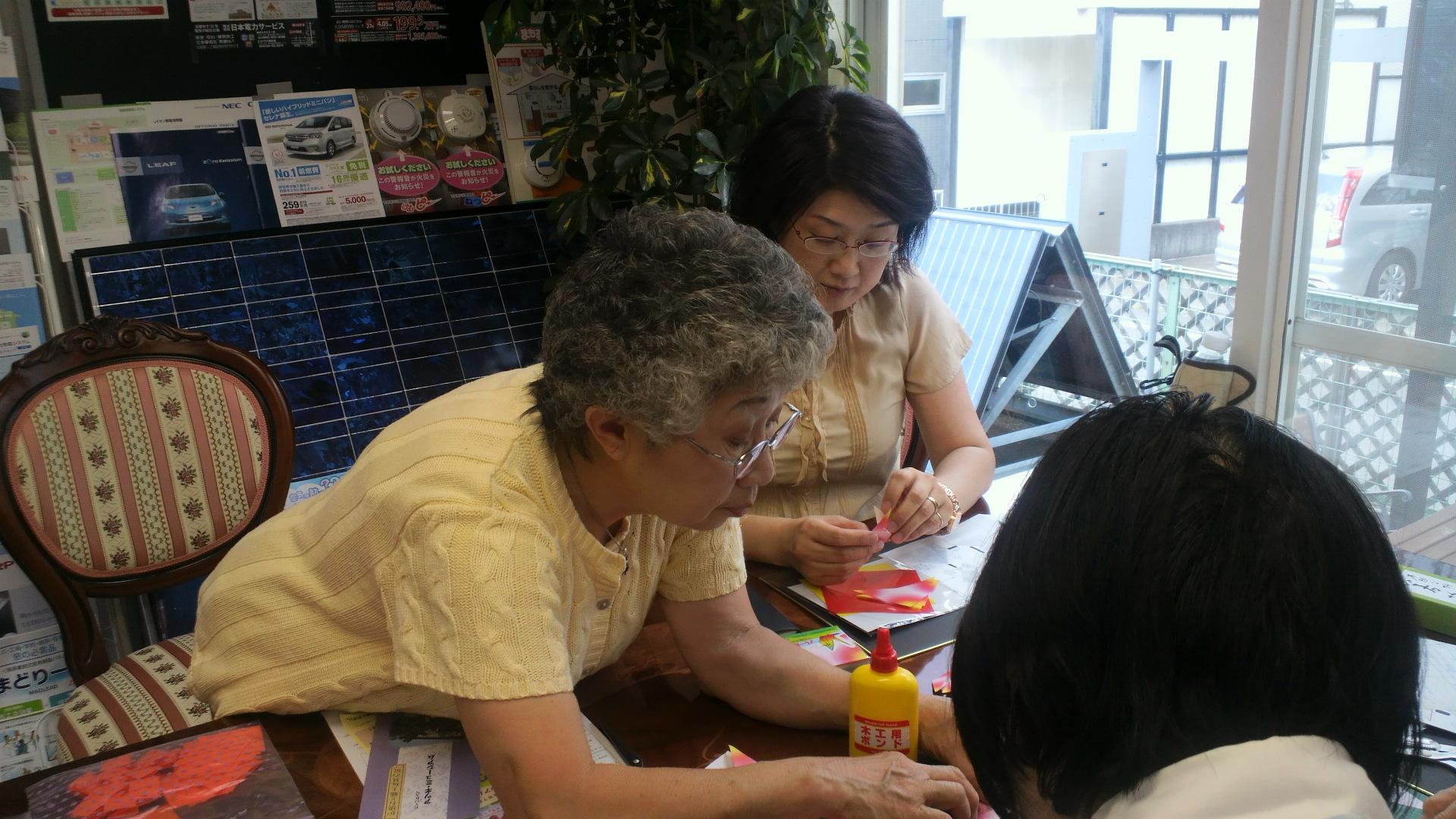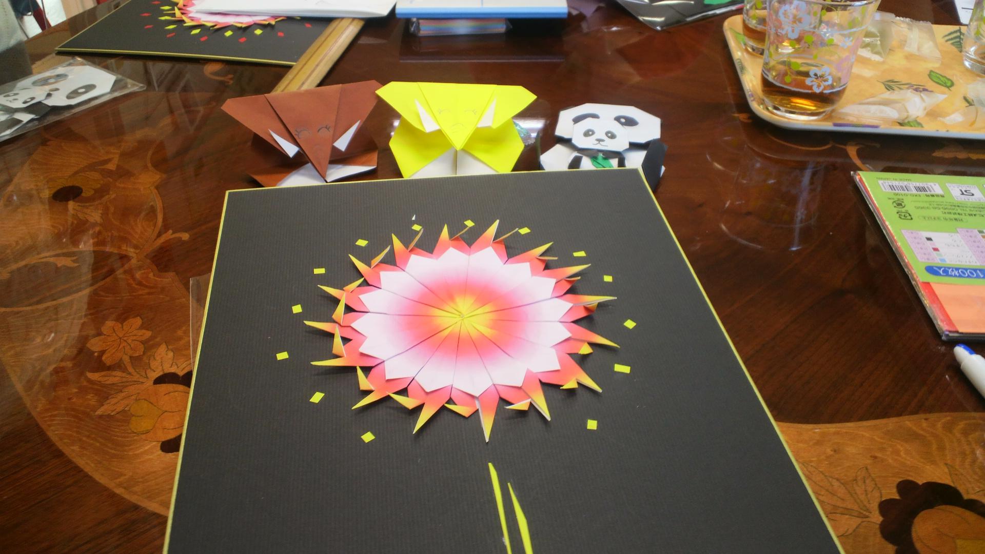 今回は、小さな折り紙の半分を使って、貼り絵の様にしました。