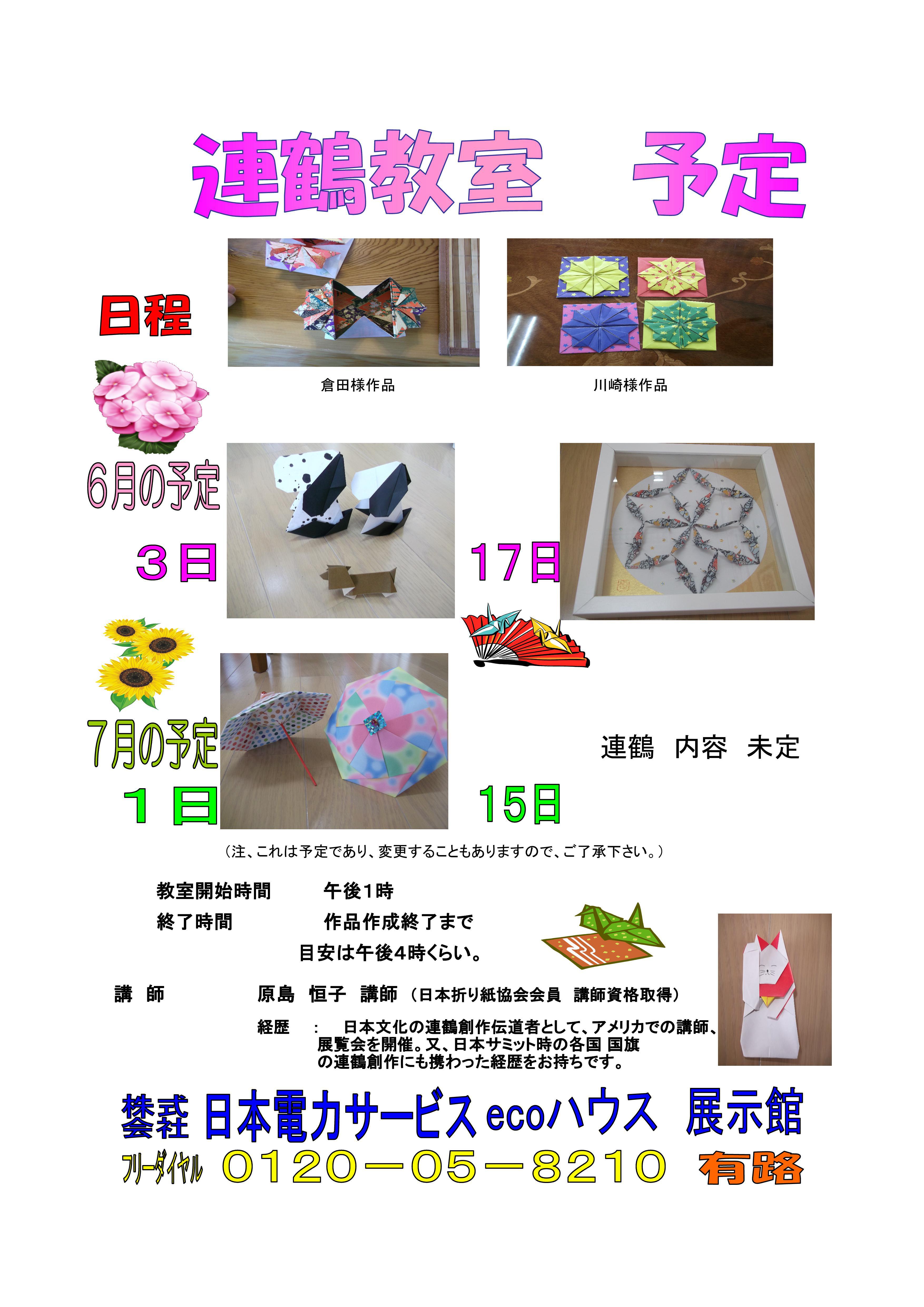 展示館のお休みと、カルチャー教室 「連鶴」 の予定案内です。