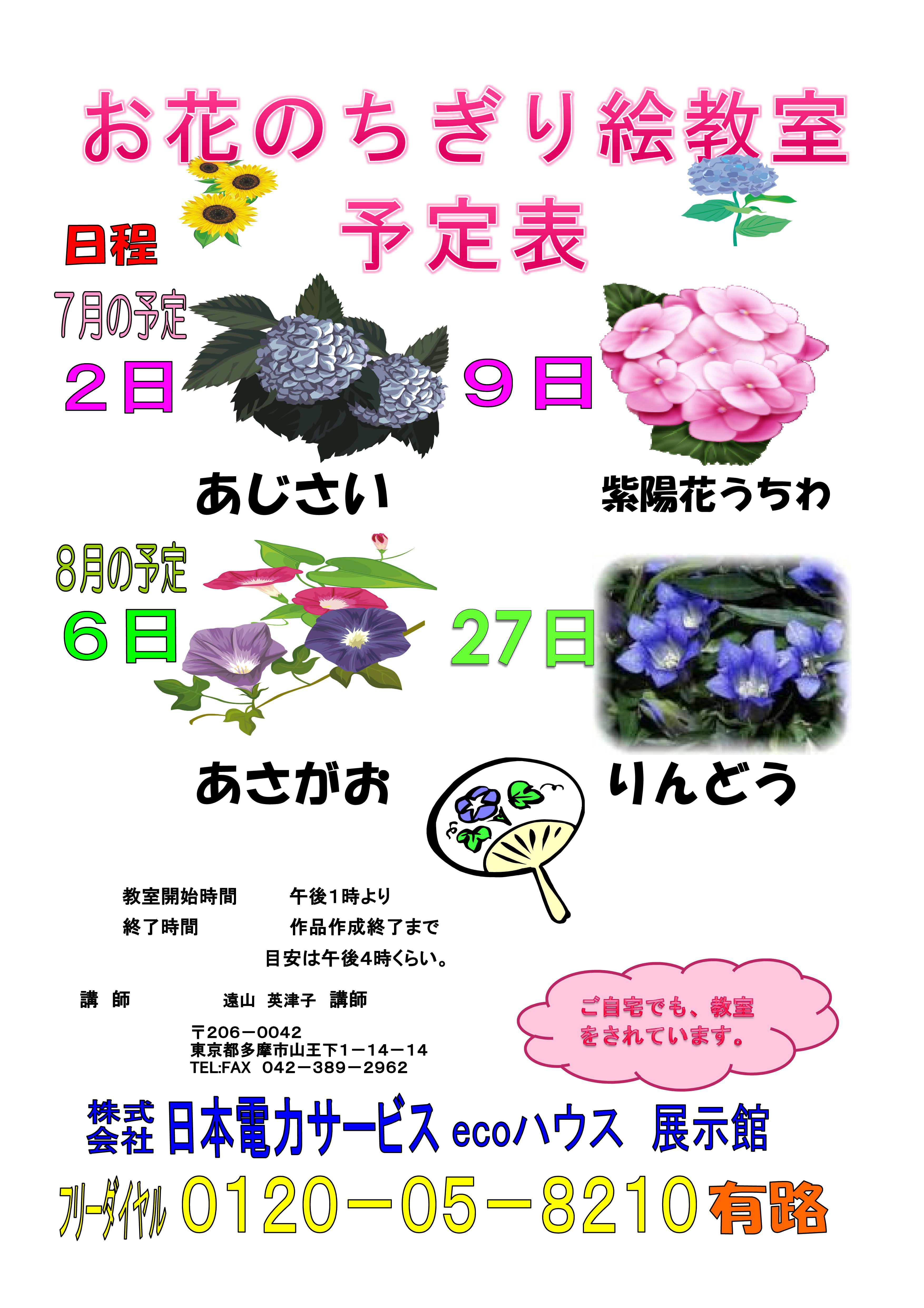 お花のちぎり絵教室も始りましたので、こちらもぜひお問い合わせ下さい。